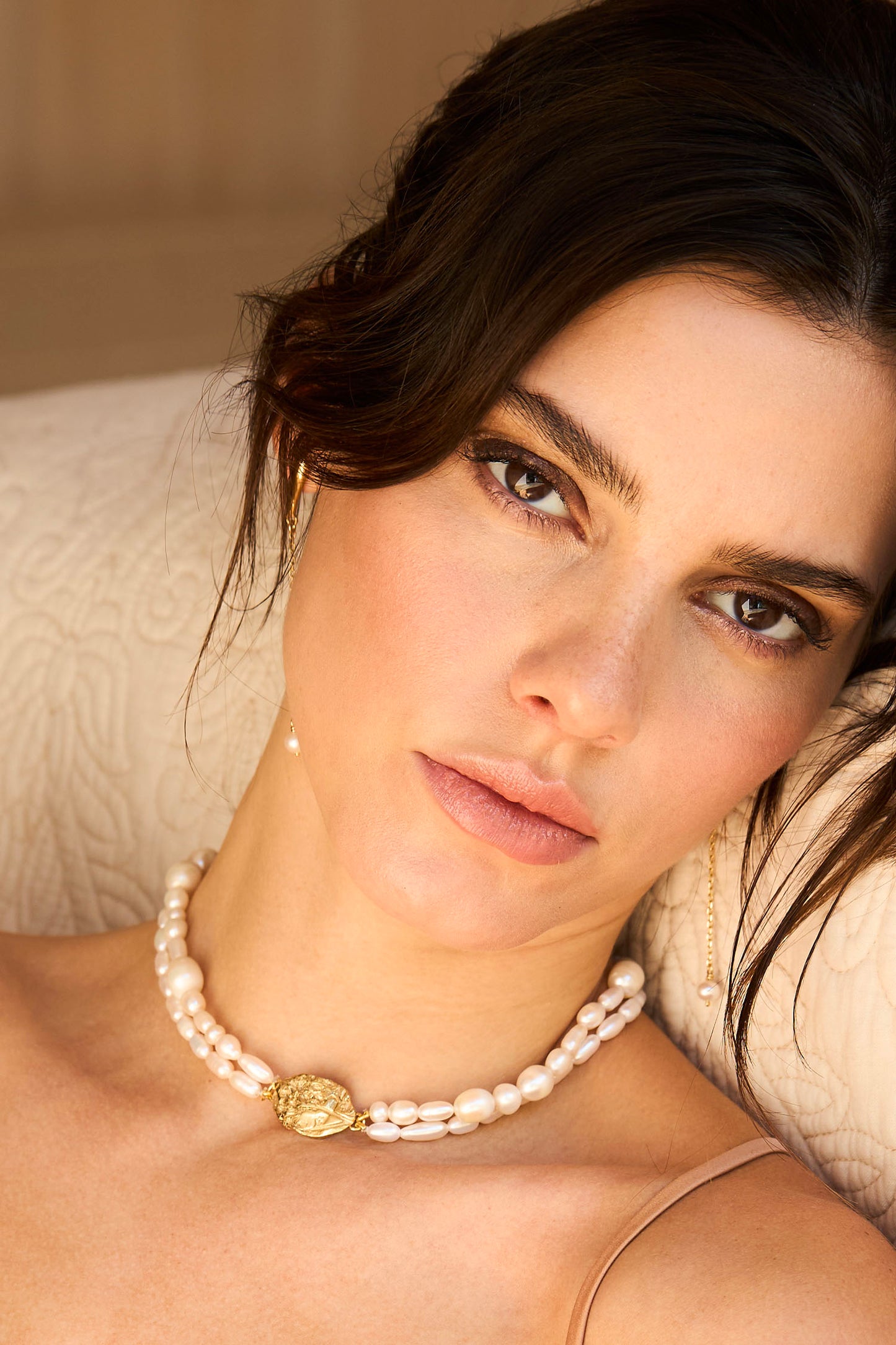 Choker de perlas de rio y camafeo en bajo relieve de plata 950, enchapado en oro 18k. Edición limitada.